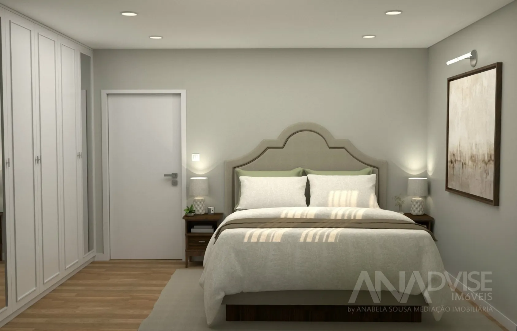 Caixilharia em alumínio com rutura térmica, janelas oscilo batentes e estores elétricos.