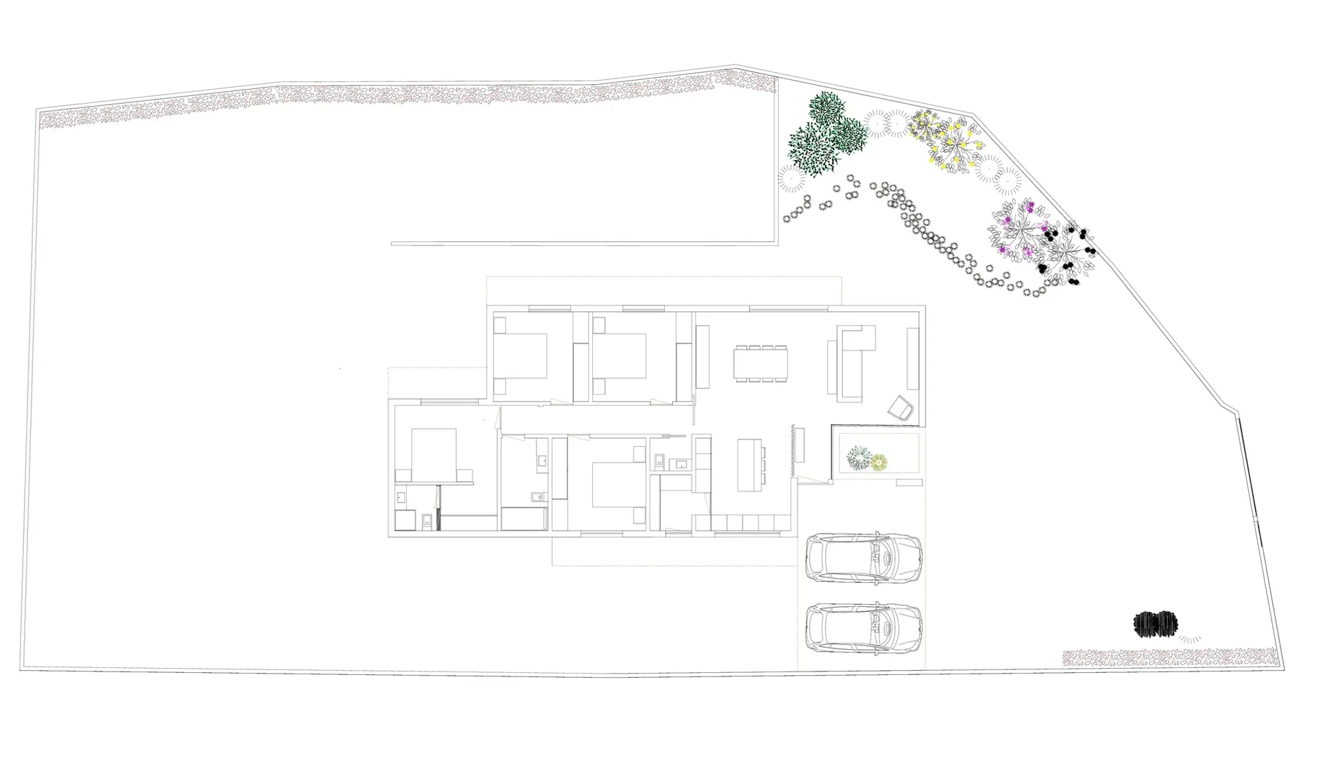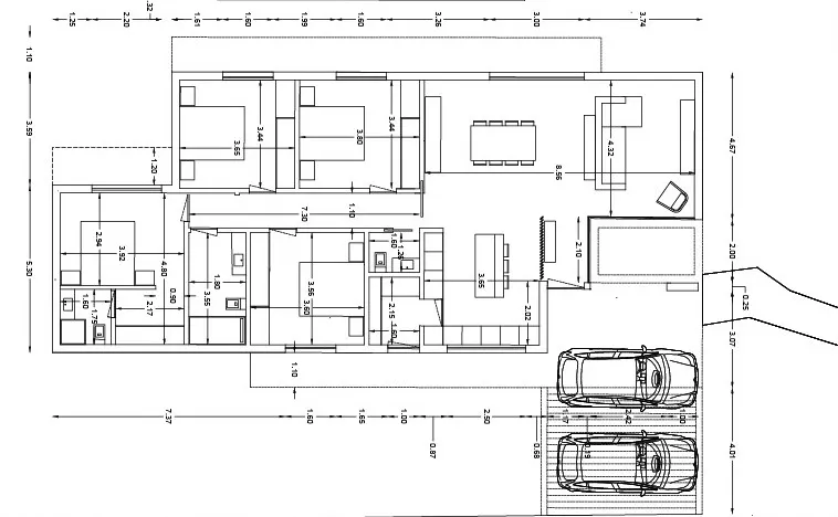With garage on the ground floor for 2 cars with remote controlled gate.