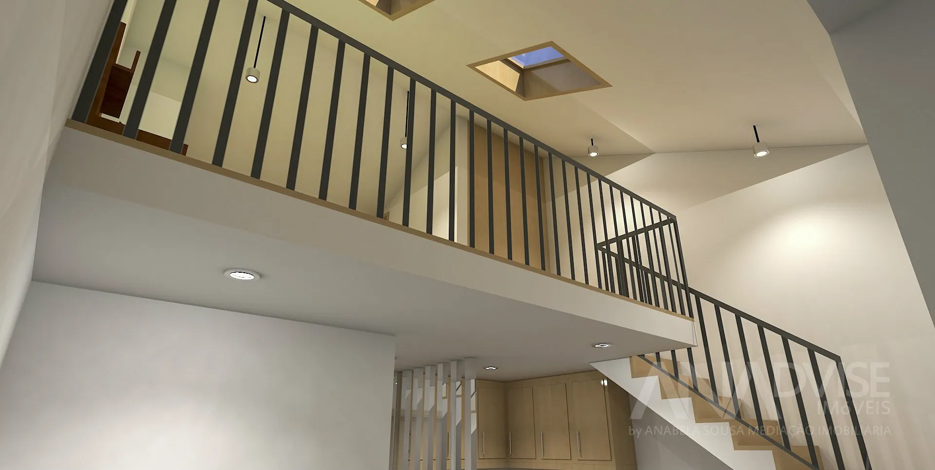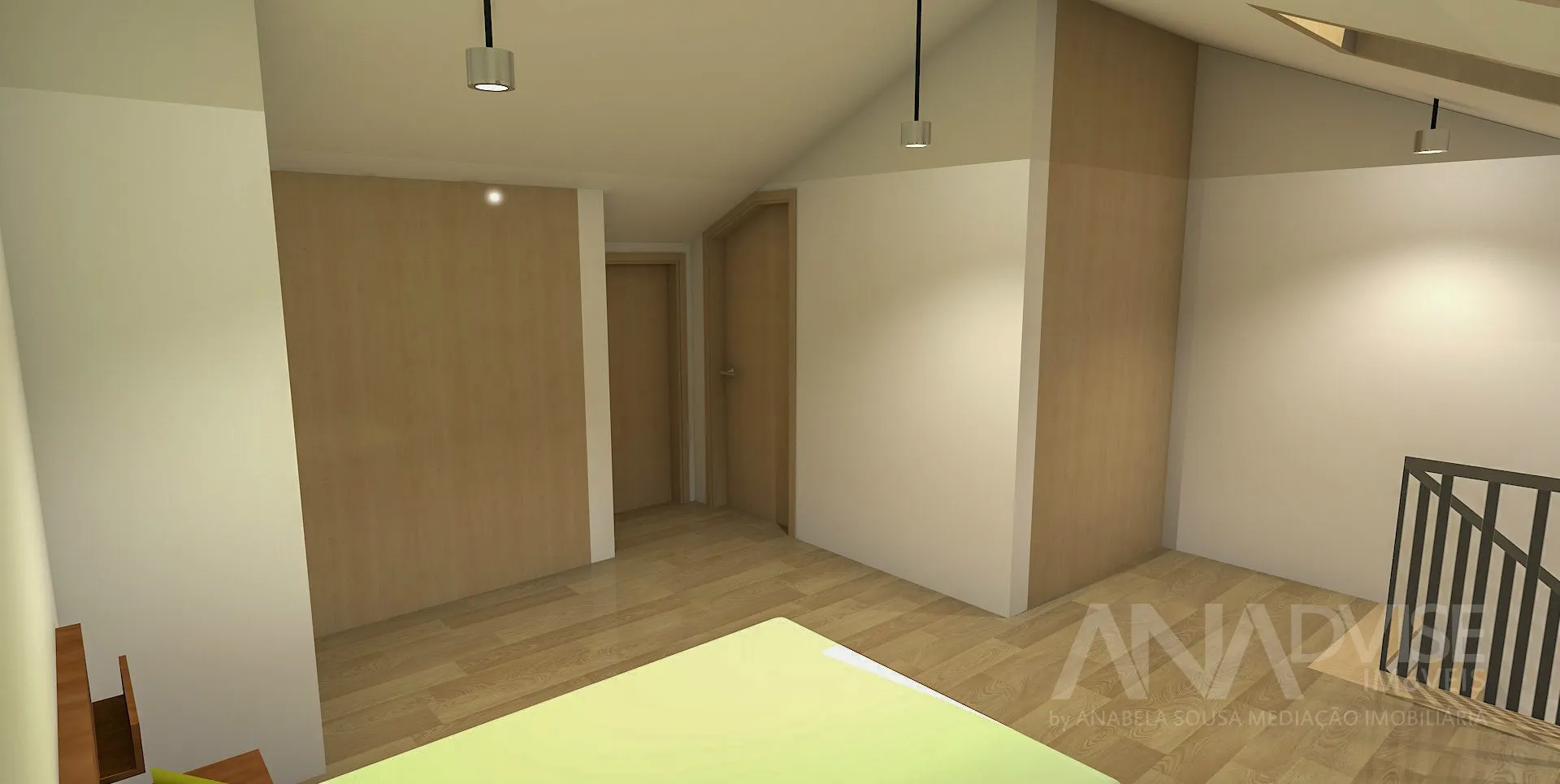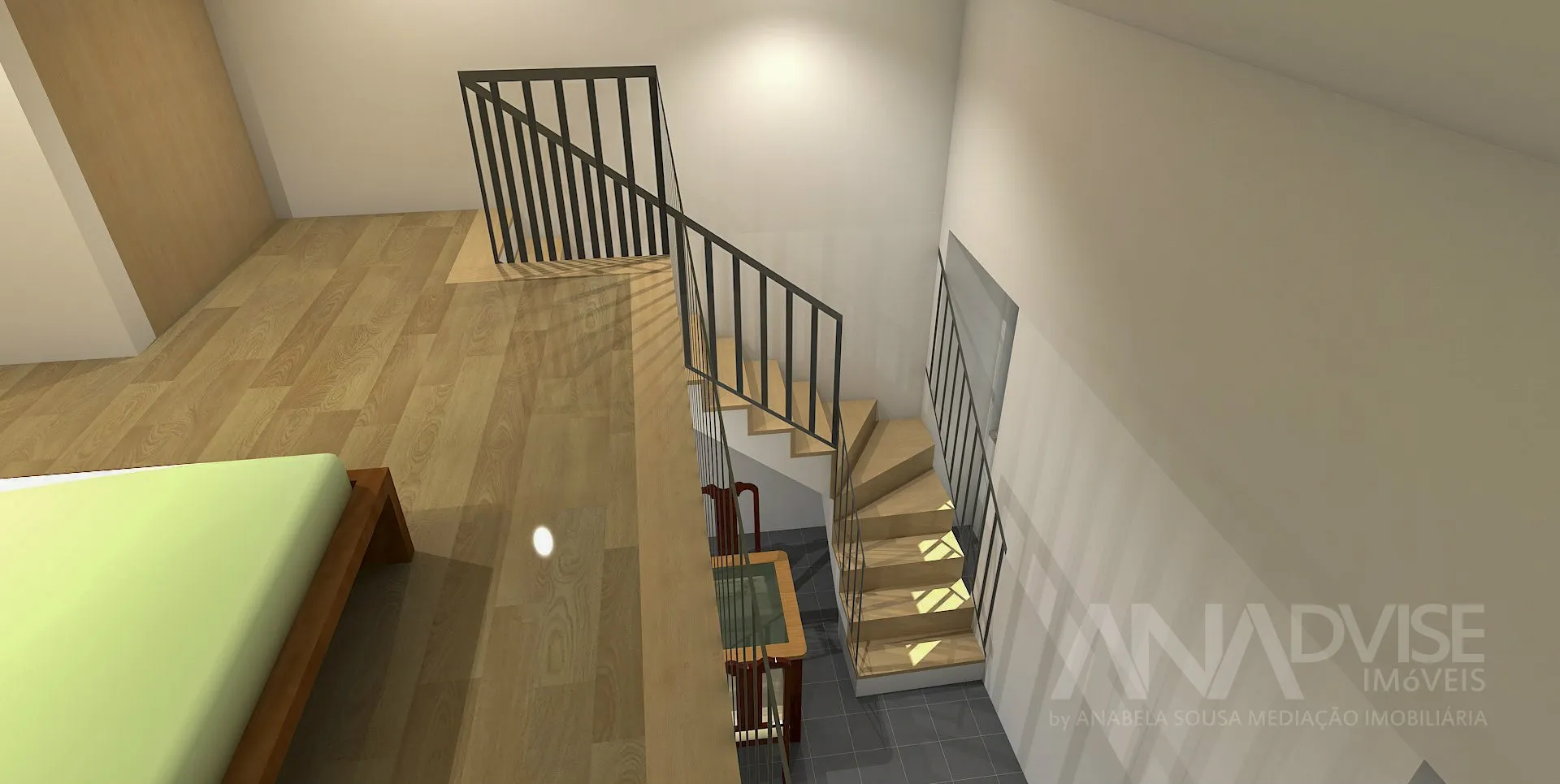 mezzanine transformed into a master bedroom, with