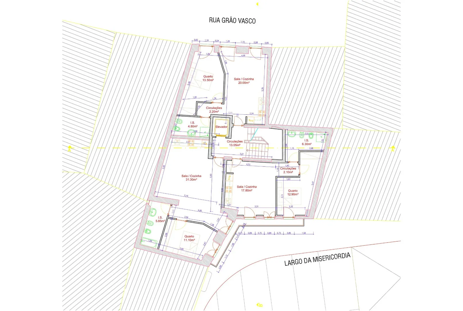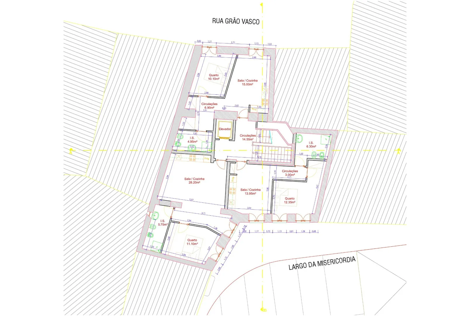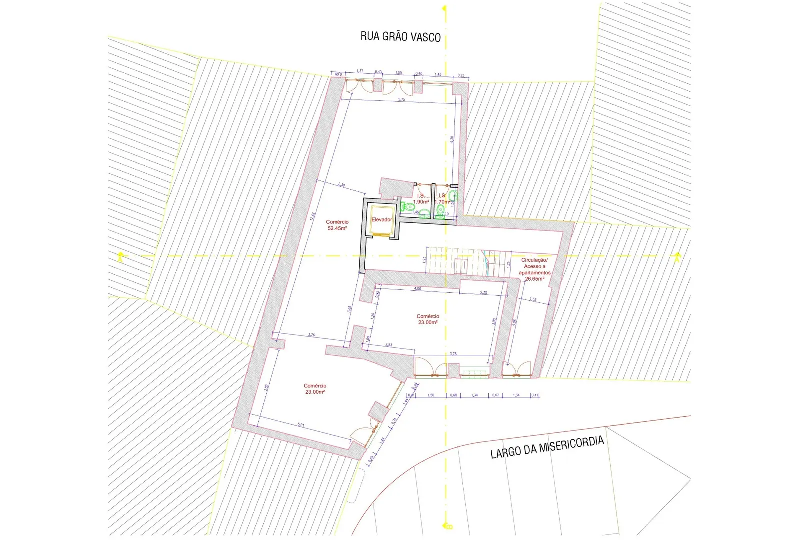 Projet étudié (pas encore approuvé) pour 11 appartements T1 d’une superficie comprise entre 40/45m2, T1 Duplex+2 et également pour 1 magasin de 120 m2 de plain-pied donnant sur 2 rues.