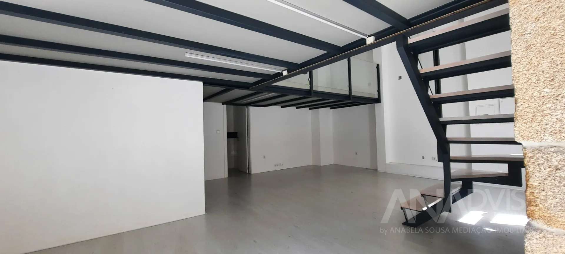Com uma área num só piso de 47m2 mais uma mesanine com 20m2.