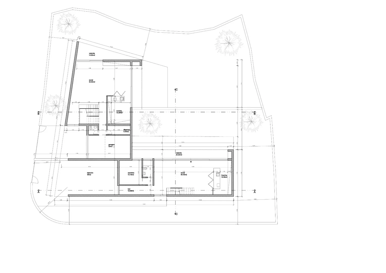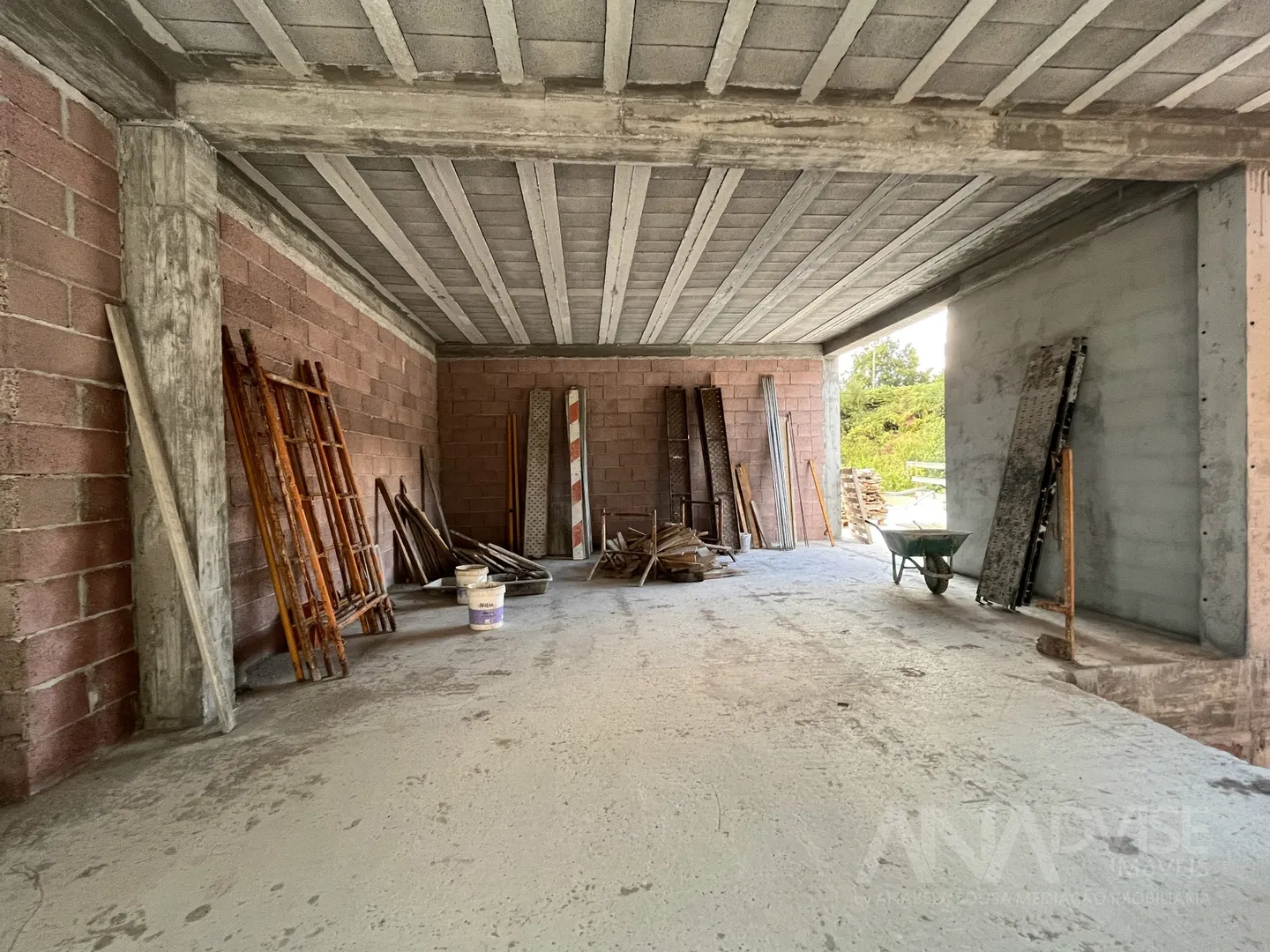 Composta de r/c com garagem, sala ( 50m2) e cozinha em open space (15 m2) , wc completo e um terraço com acesso ao jardim.