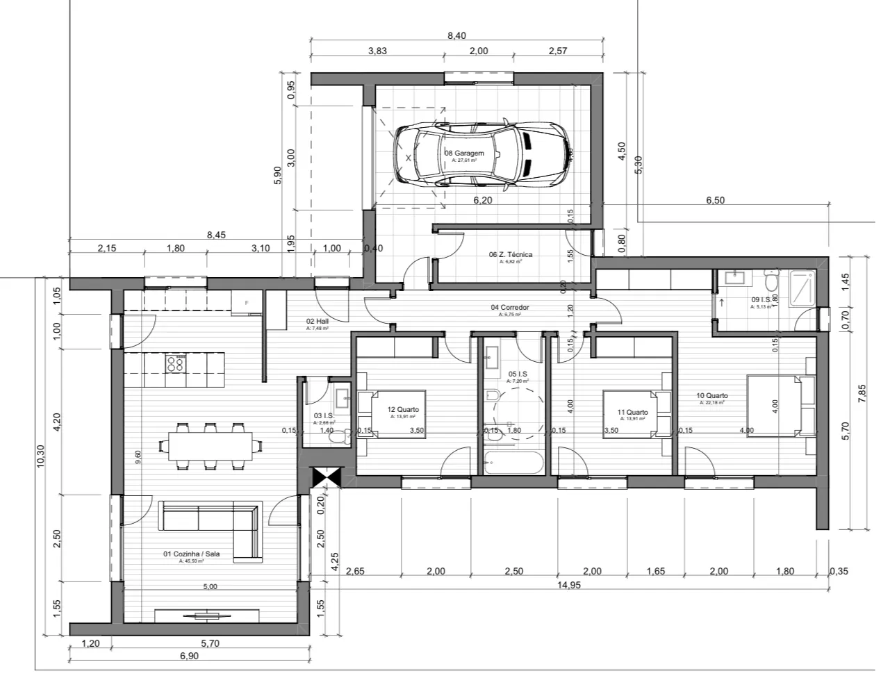 A zona social foi pensada para proporcionar luminosidade e funcionalidade, com sala e cozinha em conceito open-space. A área privada integra três quartos com roupeiros embutidos, sendo um deles suíte, três casas de banho e zonas de circulação amplas e confortáveis.