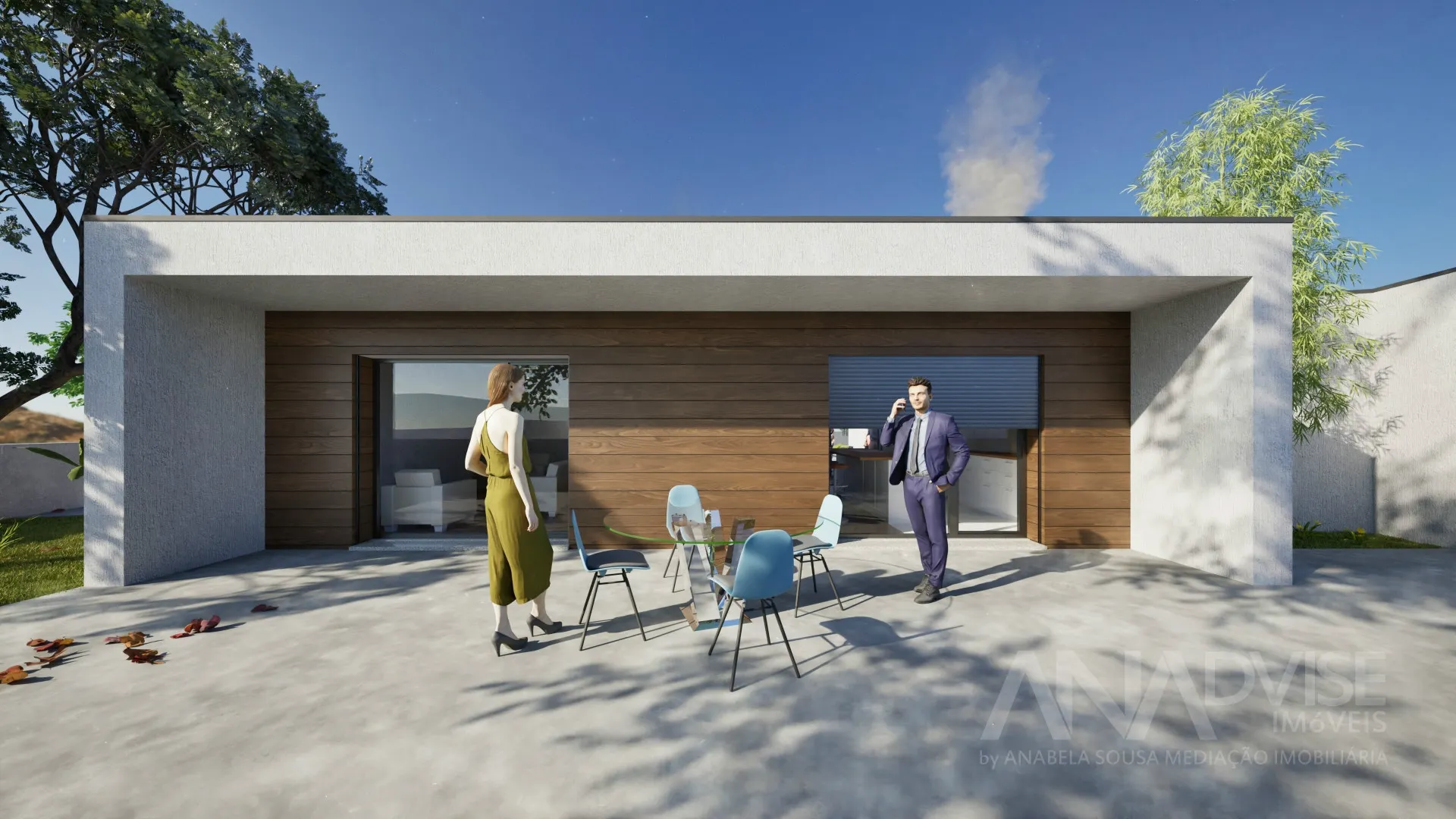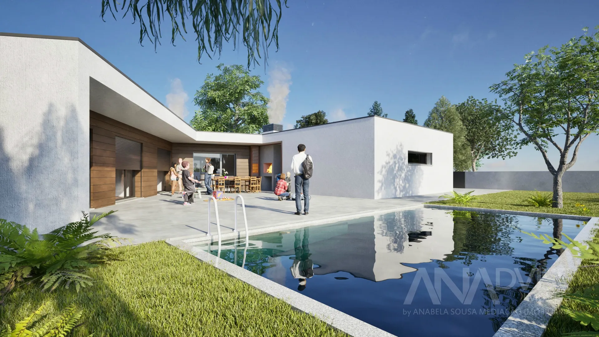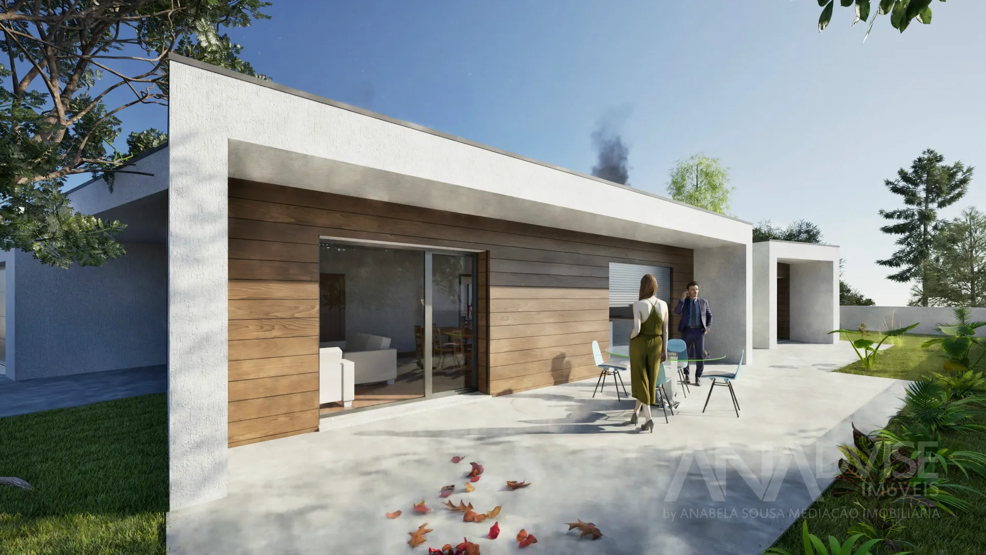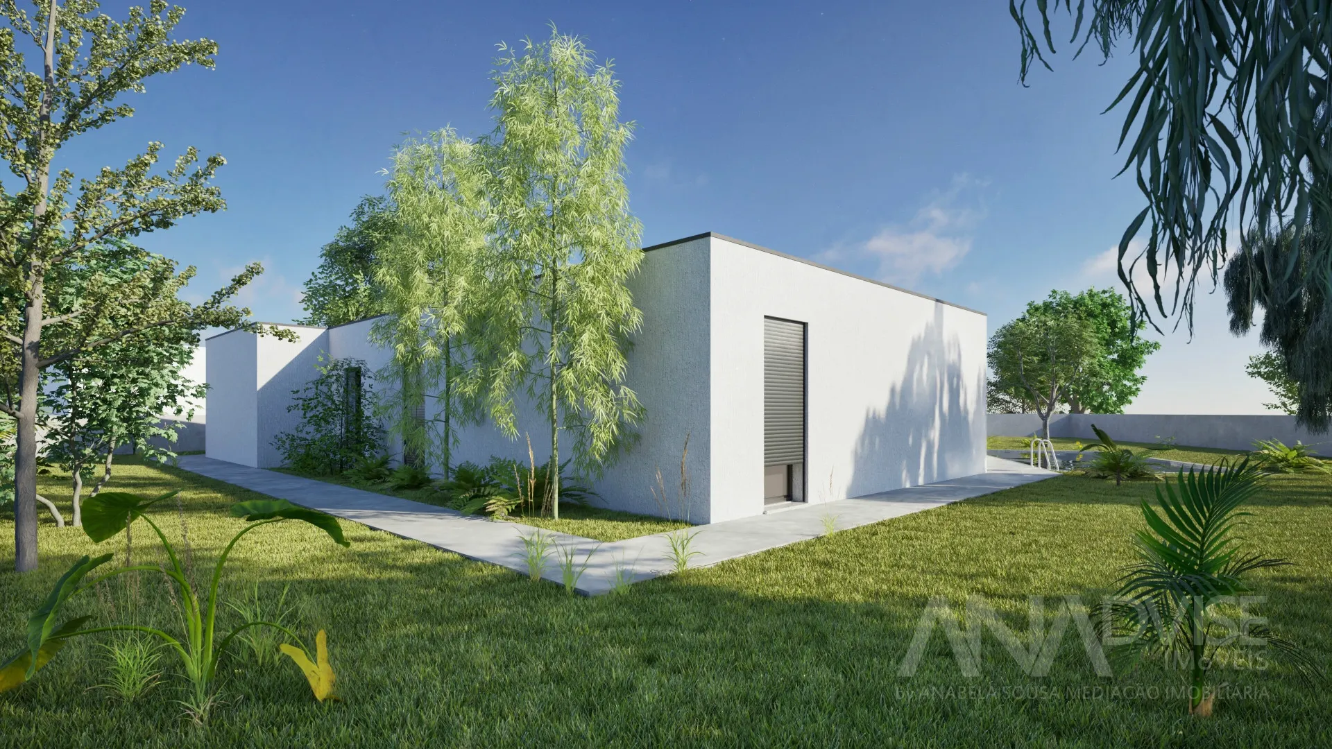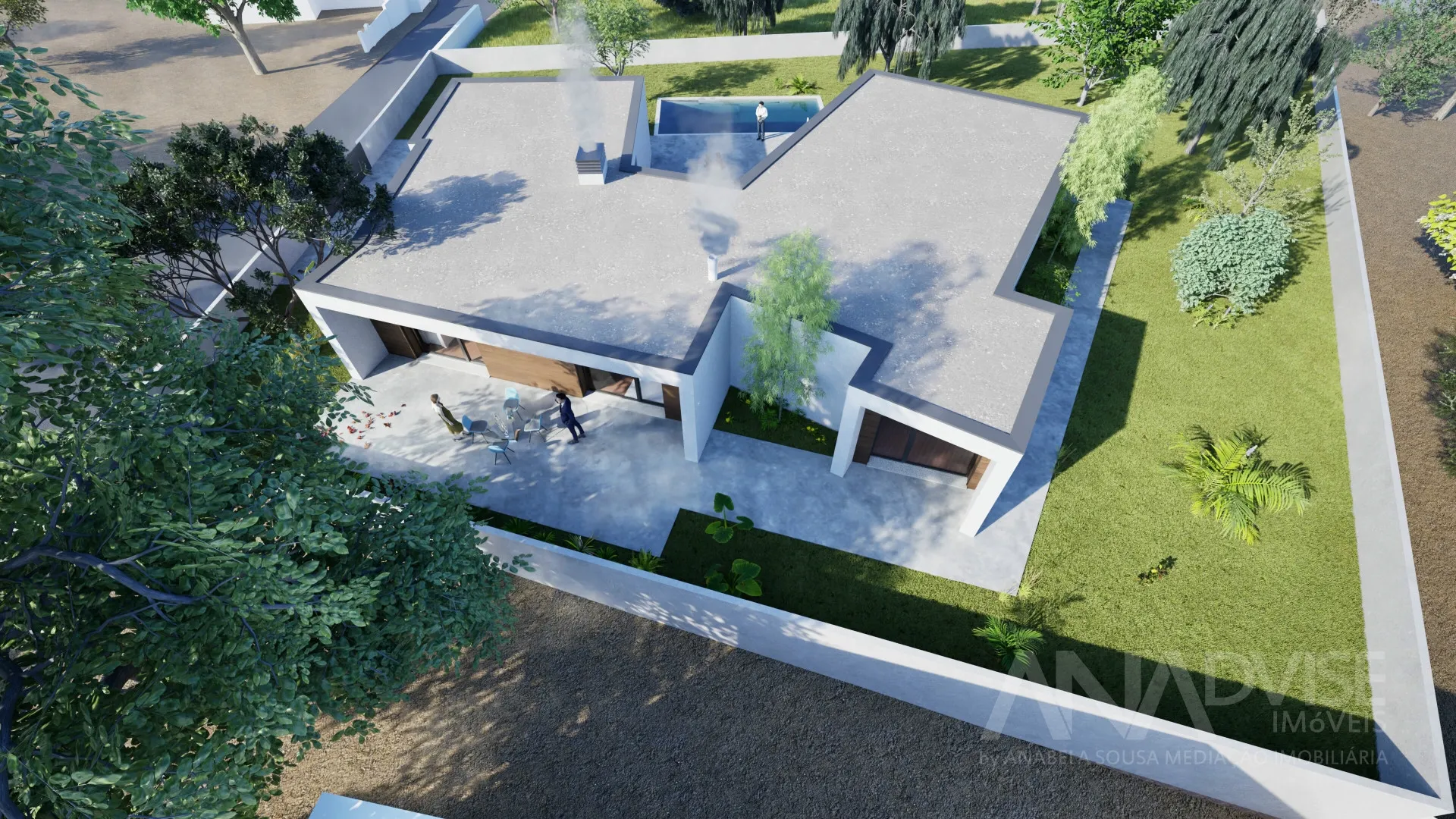 No exterior, a moradia dispõe de terreno totalmente murado, portões motorizados e arranjos exteriores em calçada de granito, garantindo privacidade e um enquadramento exterior harmonioso .