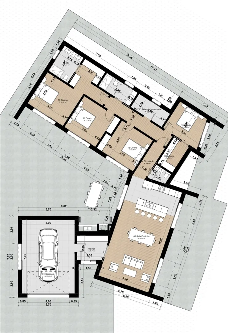 A zona social foi pensada para proporcionar luminosidade e funcionalidade, com sala e cozinha em conceito open-space. A área privada integra quatro quartos com roupeiros embutidos, sendo um deles suíte master com closet e casa de banho privativa, uma casa de banho de serviço e uma casa de banho completa de auxilio aos quartos, e zonas de circulação amplas e confortáveis. E ainda uma garagem fechada com 35m2.