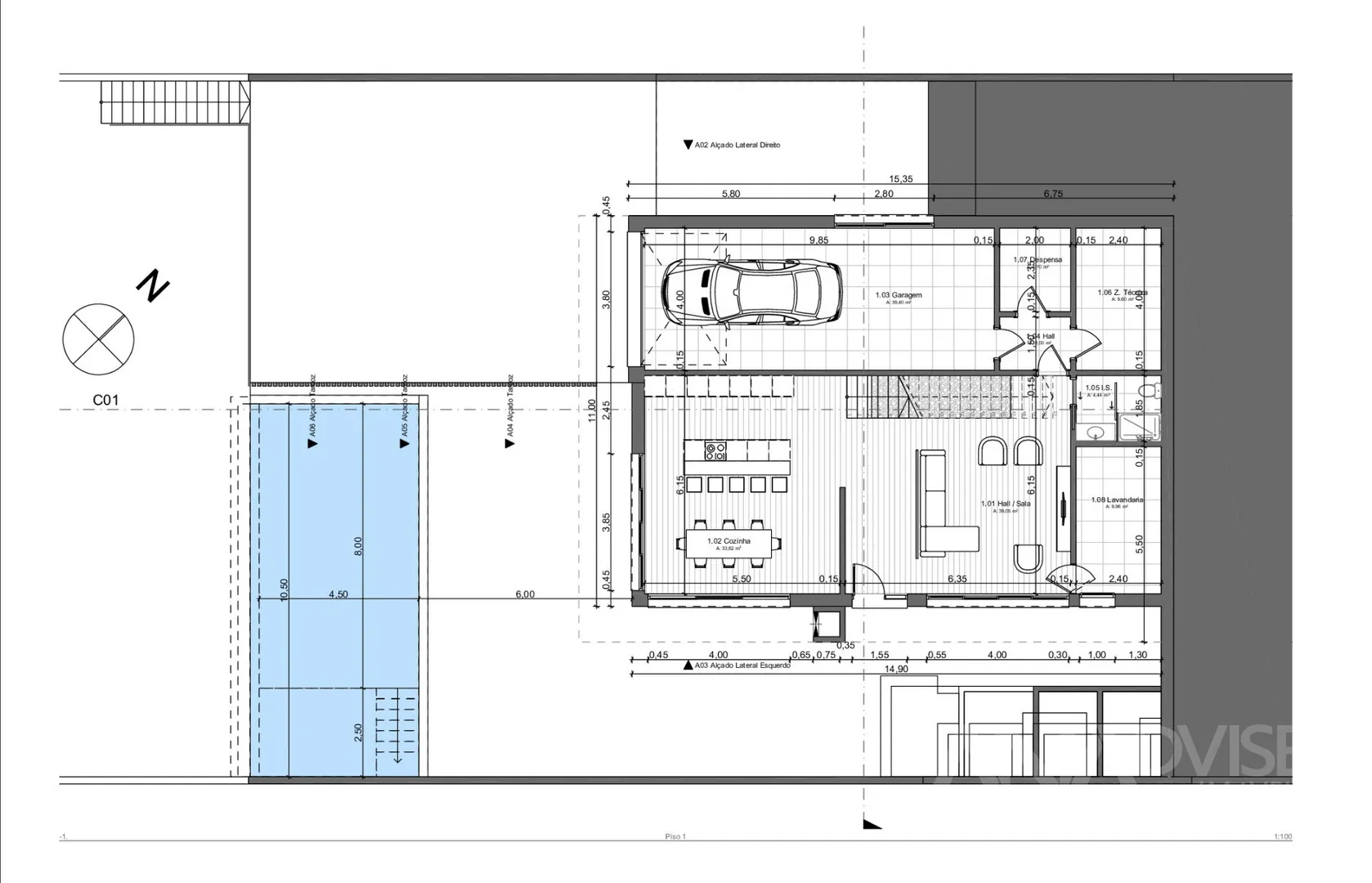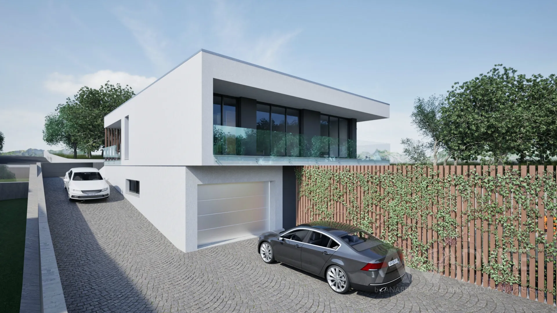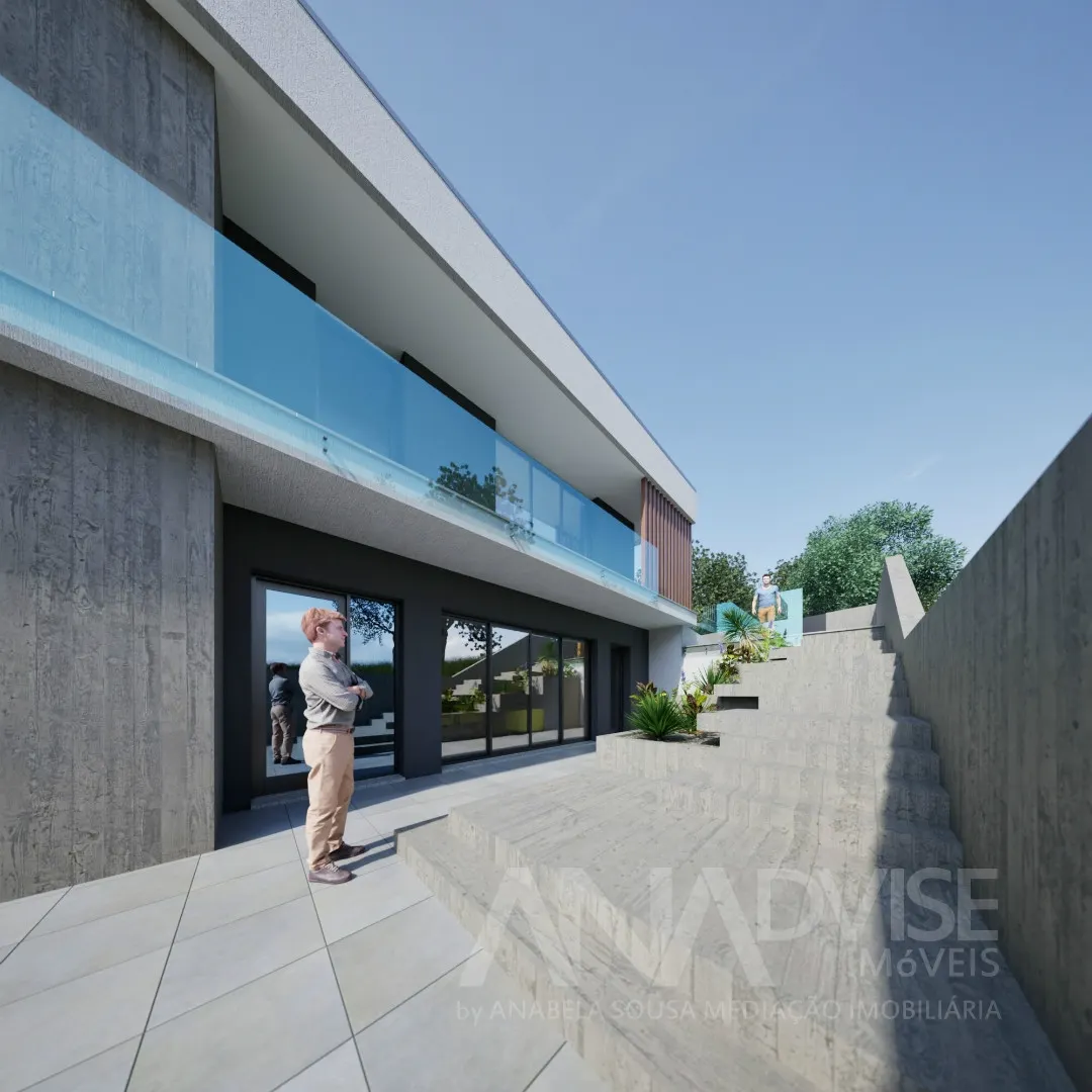 Inserida num lote de 758 m², esta propriedade destaca-se pela sua arquitetura moderna e áreas generosas, com 376 m² de área bruta de construção.