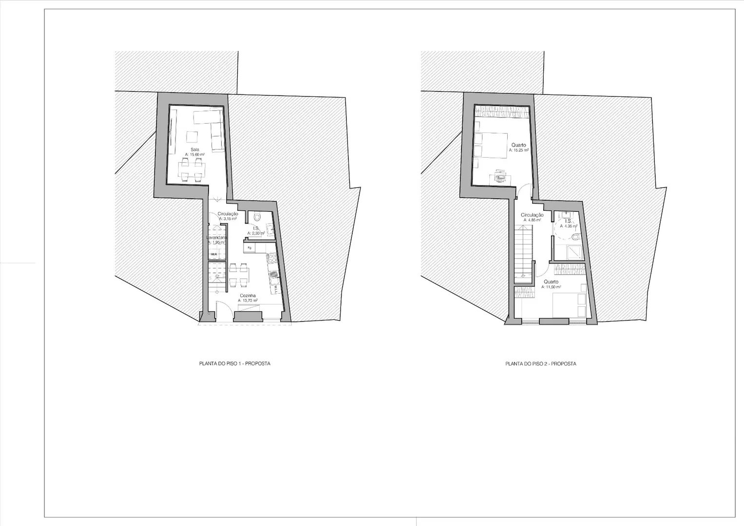 1º andar com 2 quartos servidos por wc completo, roupeiros e com portas rasgadas o que permite a entrada de muita claridade.