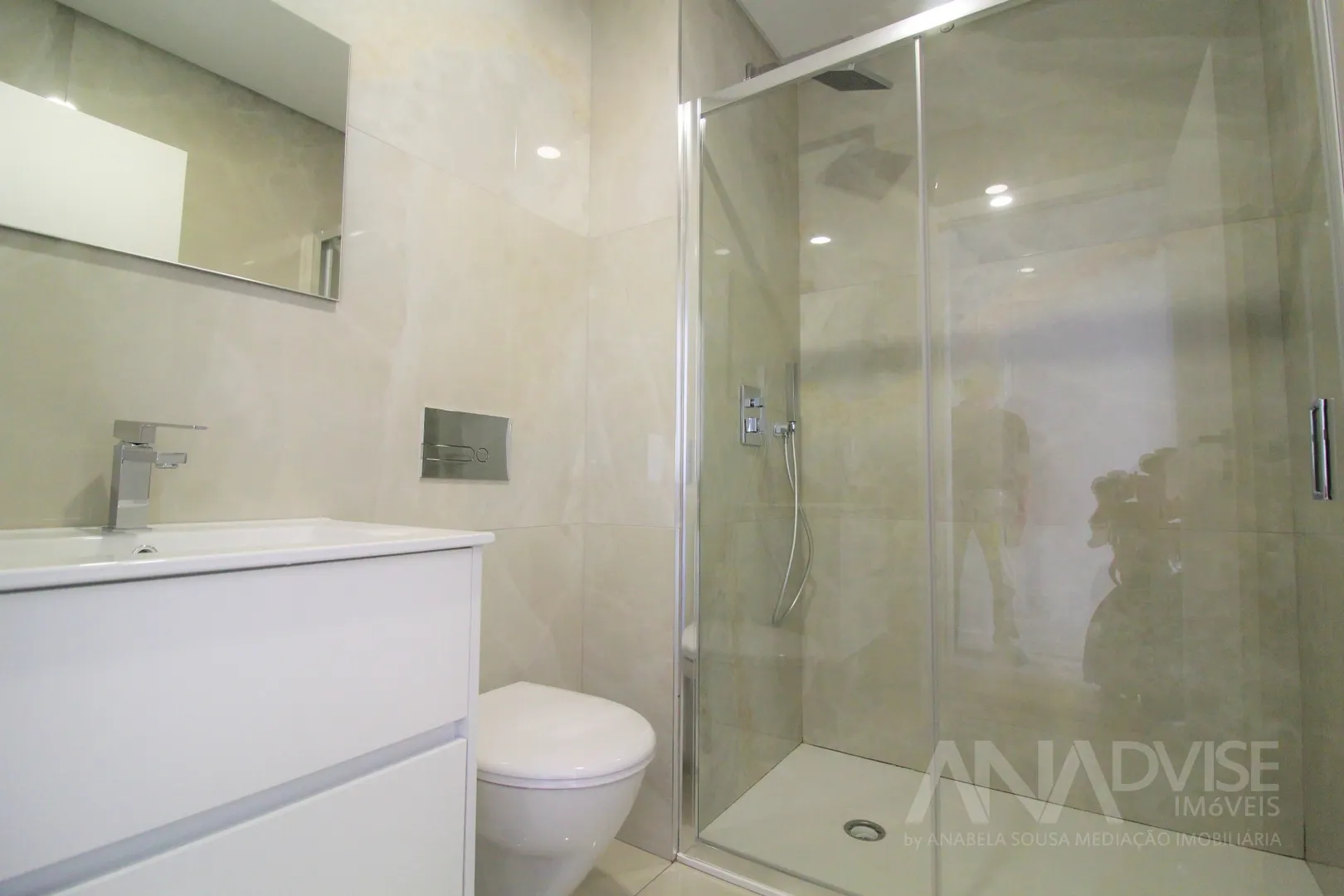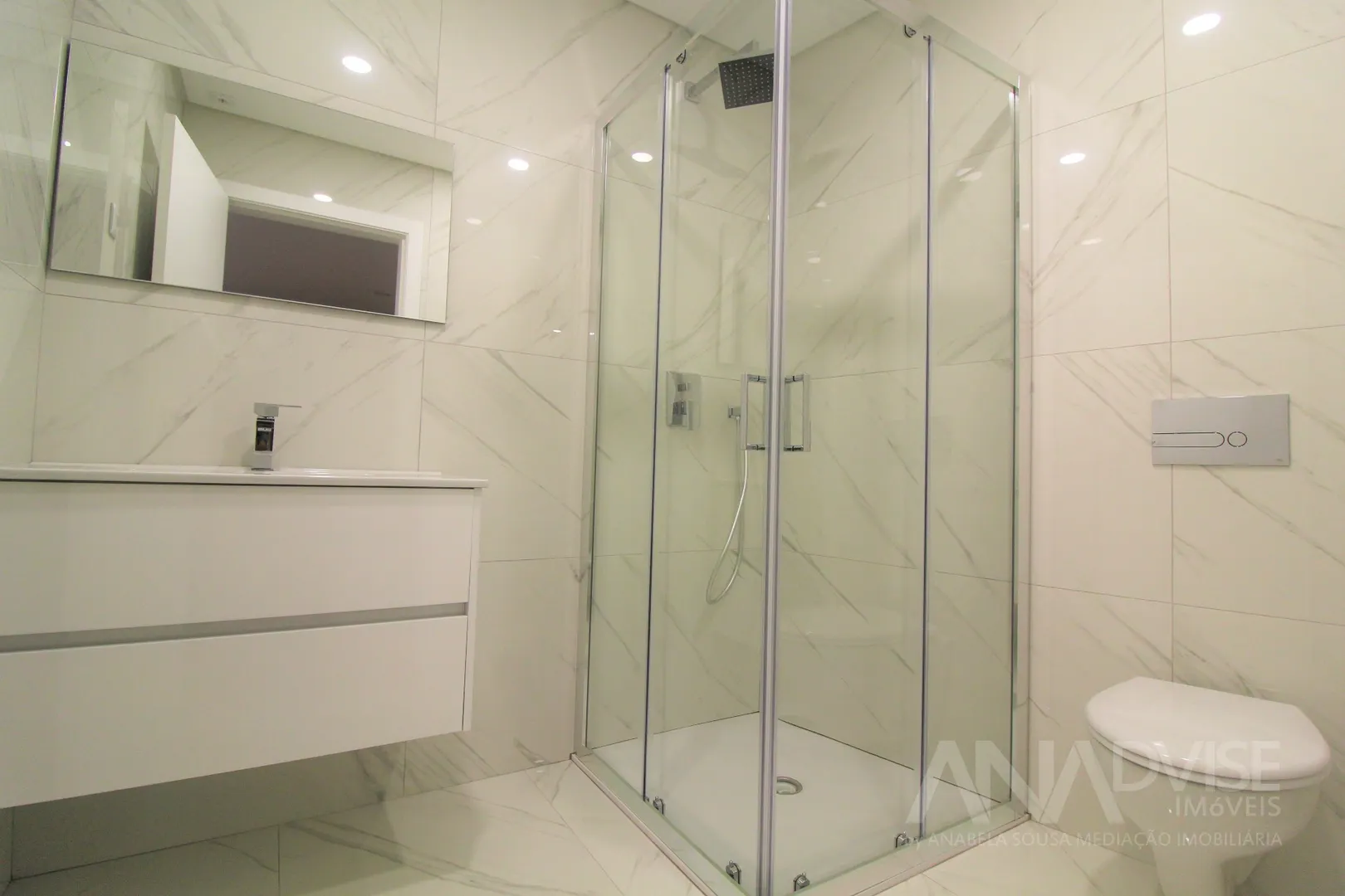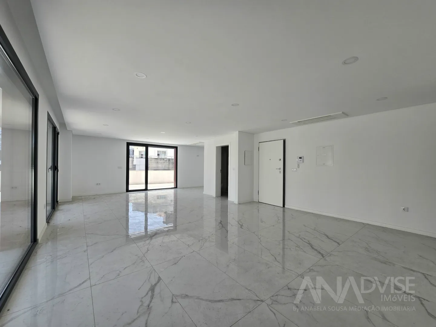 Apartamento T4, no último piso, com terraço e churrasqueira. Composto por cozinha mobilada, sala ampla de cerca de 40m2, três casas de banho completas, três quartos e uma suite.