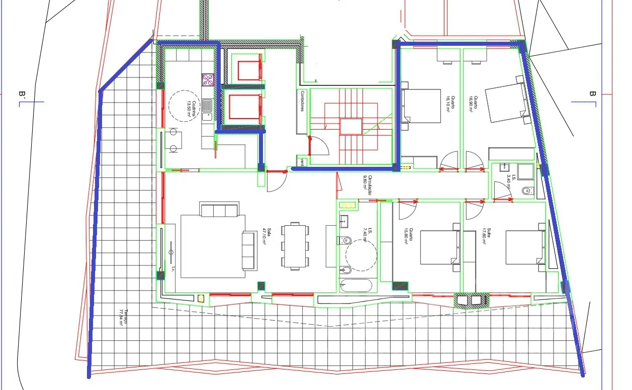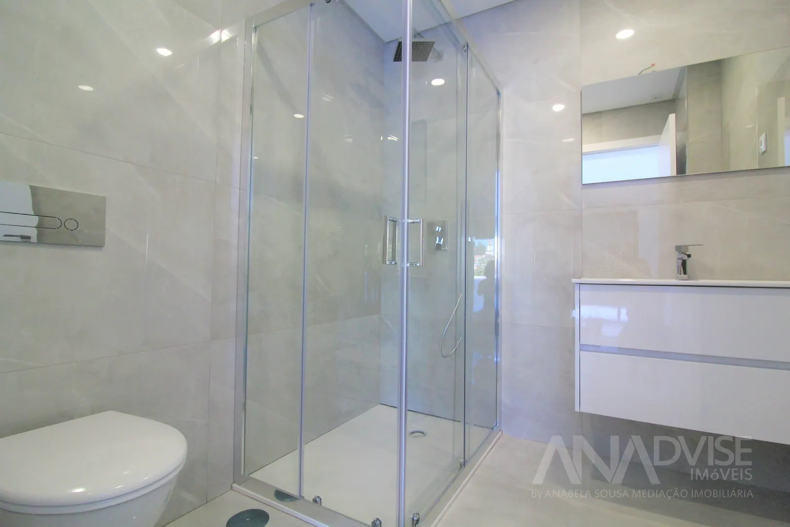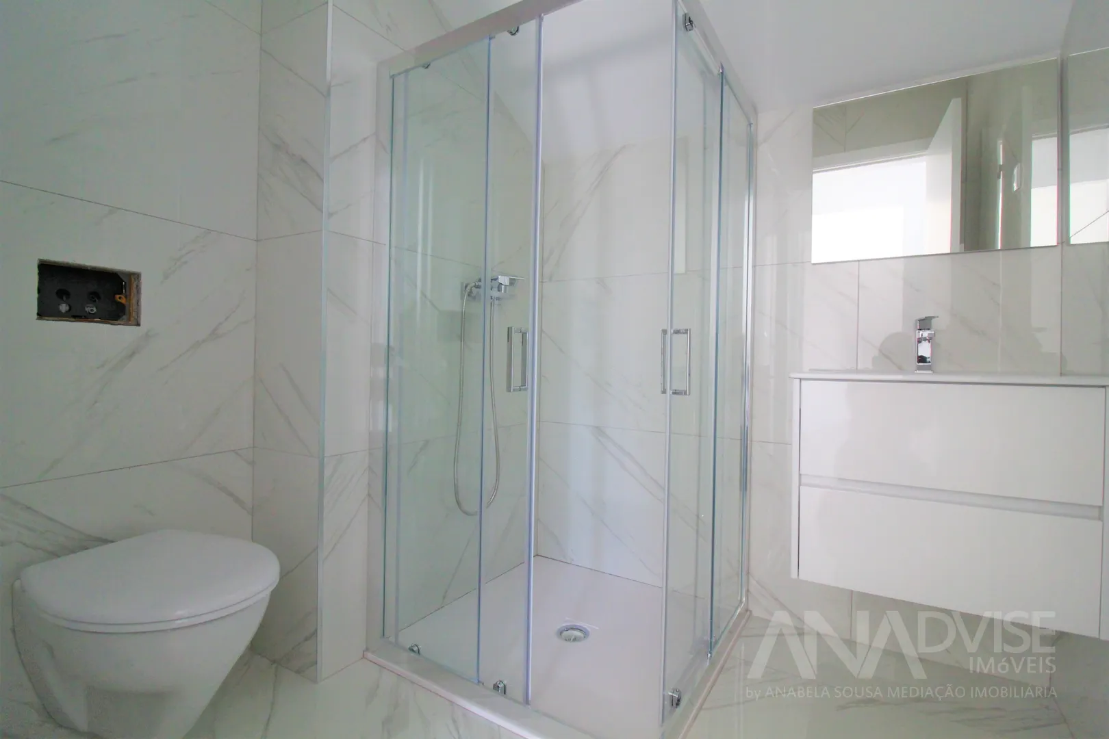 Apartamento T4, no último piso, com terraço e churrasqueira. Composto por cozinha mobilada, sala ampla de cerca de 40m2, três casas de banho completas, três quartos e uma suite.