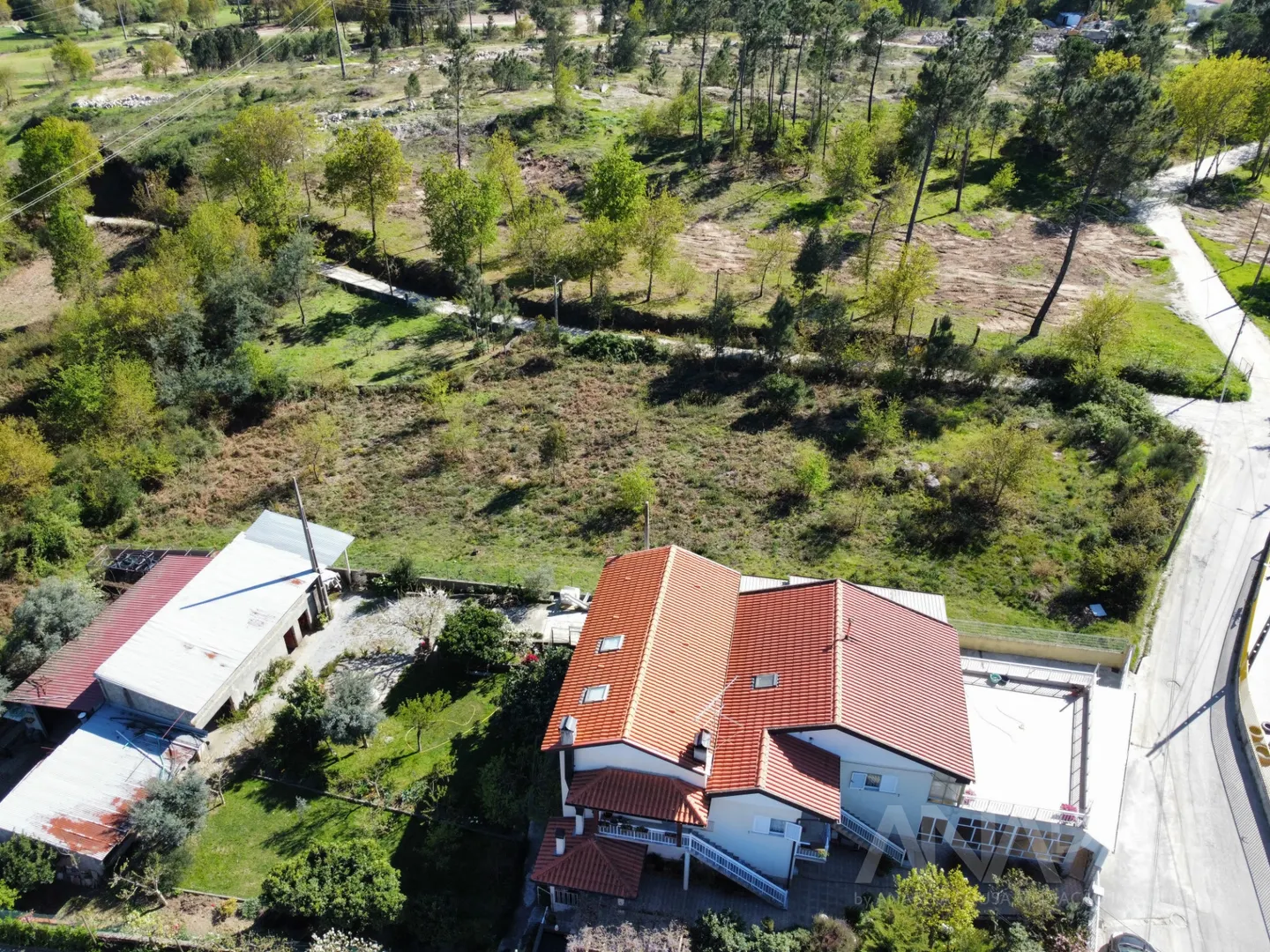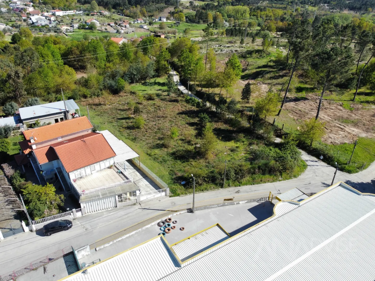 Com duas frentes viradas para estradas, já com esgotos, eletricidade, telecomunicações e agua da companhia.