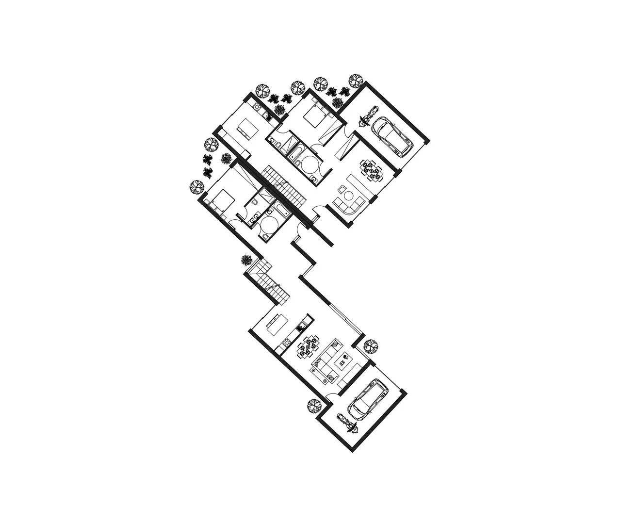 Casa B: T4 con área bruta de 186.63m2 y balcones de 36.33m2